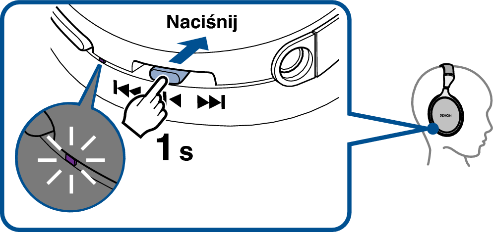 Naciśnij i przytrzymaj przycisk sterowania słuchawek przez około 1 sekundę
