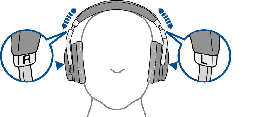 Aby słuchany dźwięk był najlepszej jakości, muszle słuchawkowe powinny prawidłowo zakrywać lewe i prawe ucho. Jeśli między muszlami słuchawkowymi i uszami będą szczeliny, dźwięk będzie się wydostawał i poziom tonów niskich oraz skuteczność funkcji redukcji szumów zostaną obniżone.