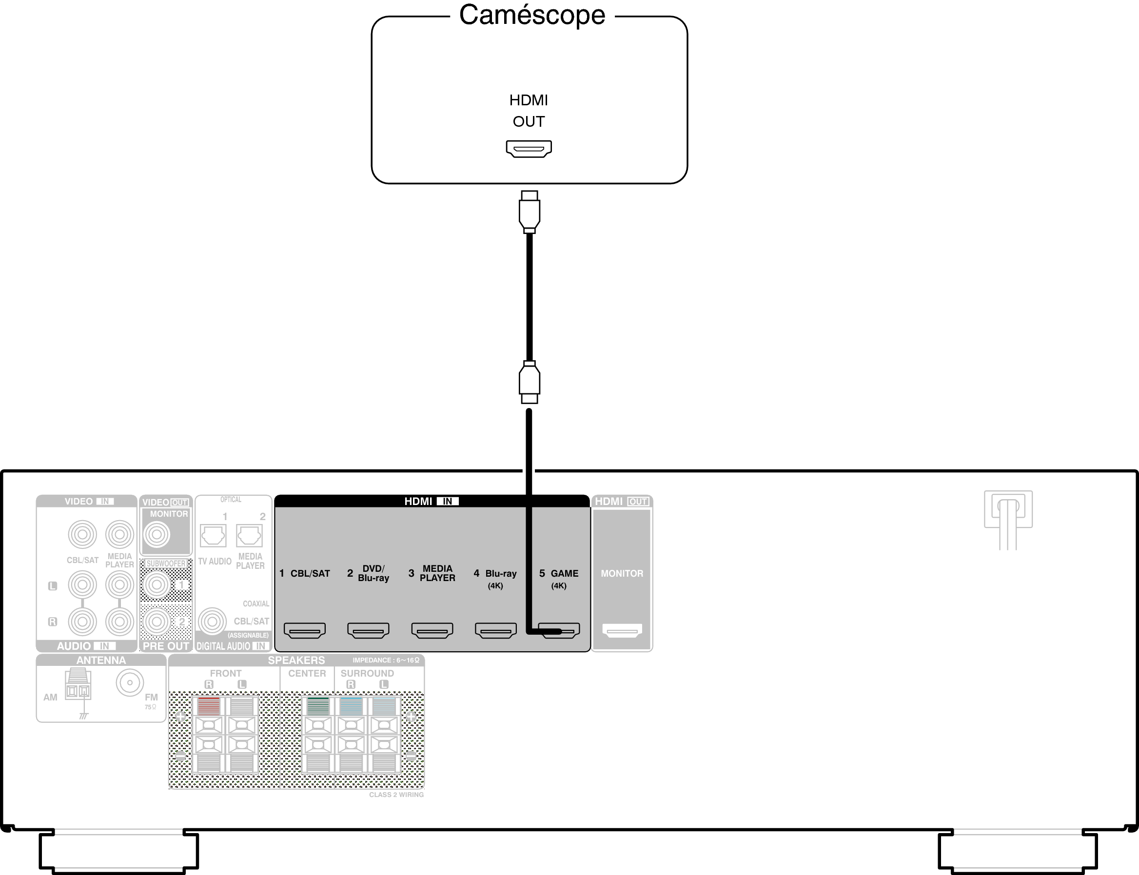 Cette explication utilise la connexion avec un caméscope vidéo comme exemple.