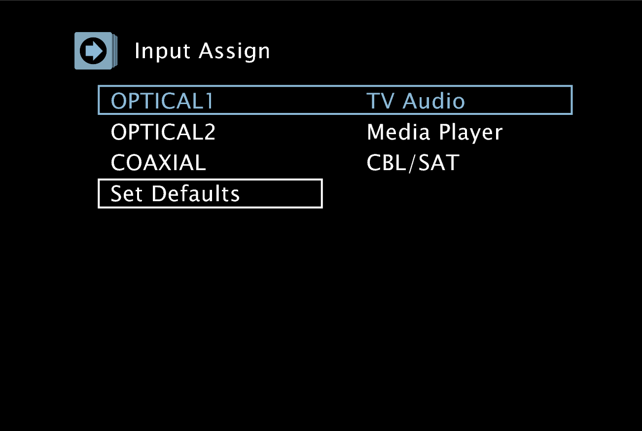 As definições de “Input Assign” regressam aos valores da predefinição.