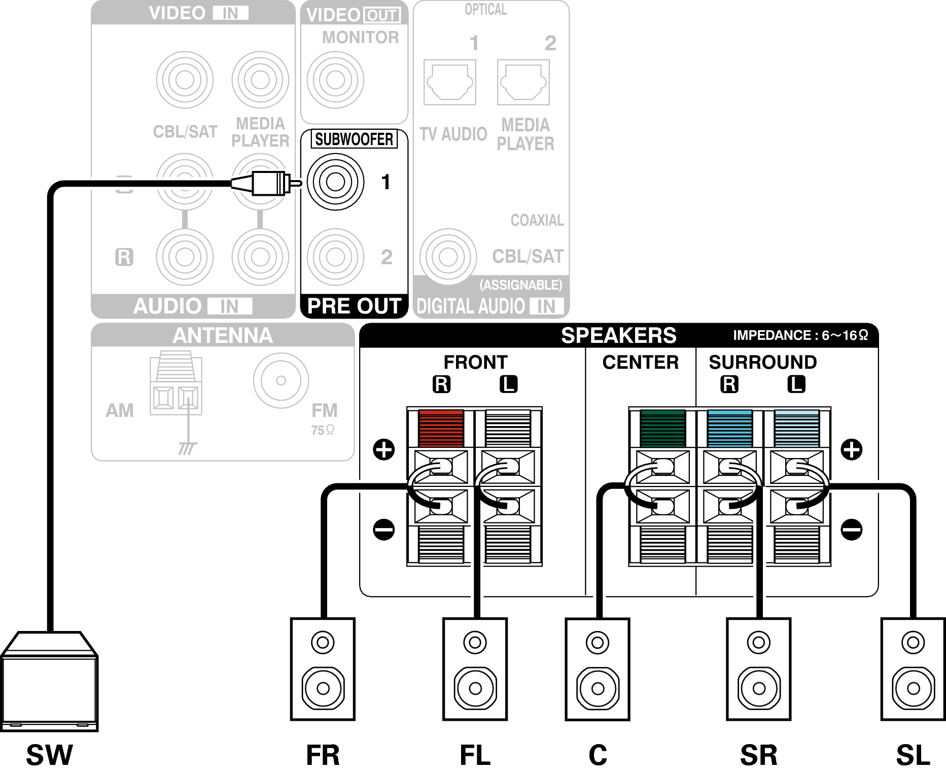 Isto funciona como um sistema surround básico de 5.1 canais.