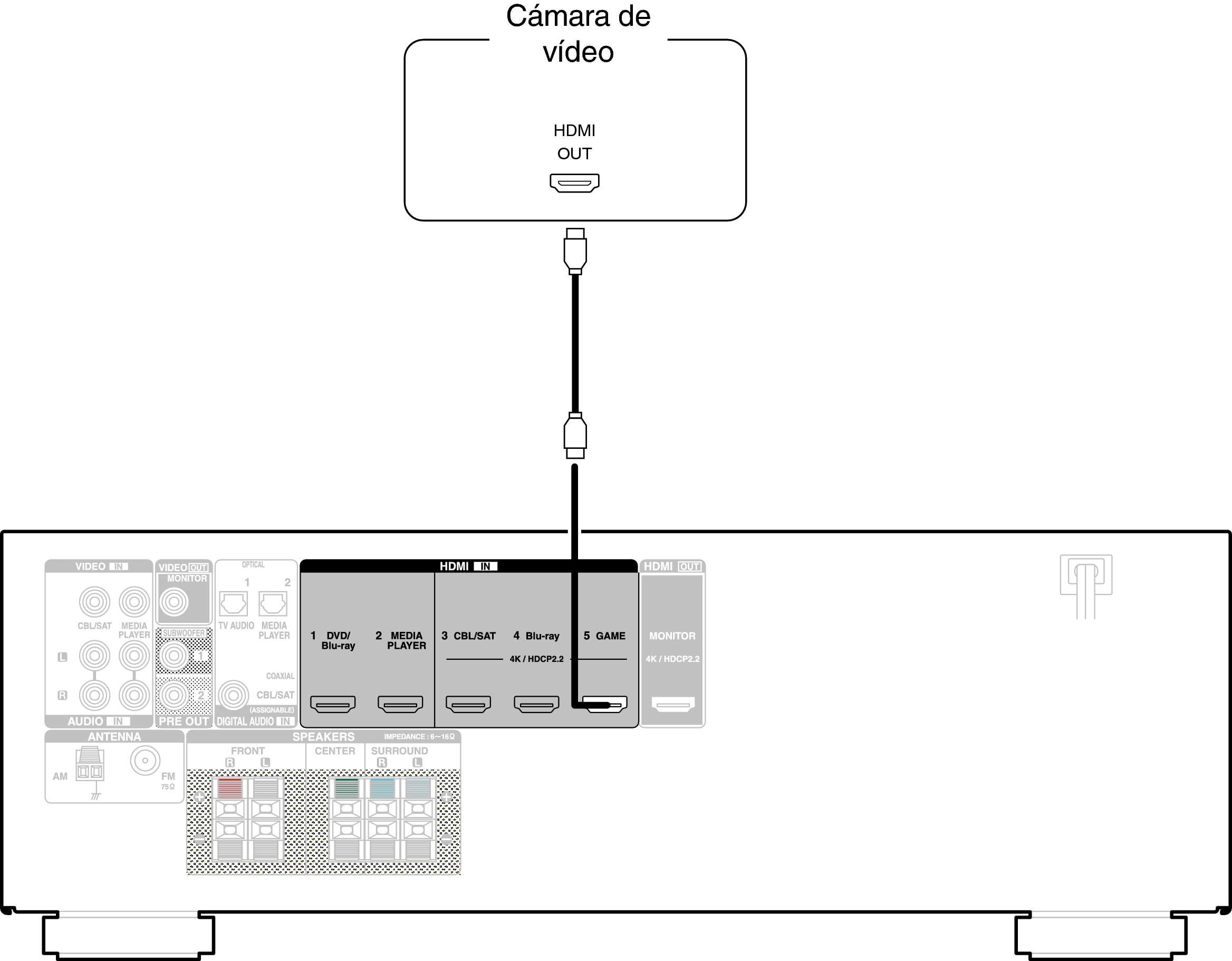 En esta explicación se incluye la conexión con una cámara de vídeo como ejemplo.