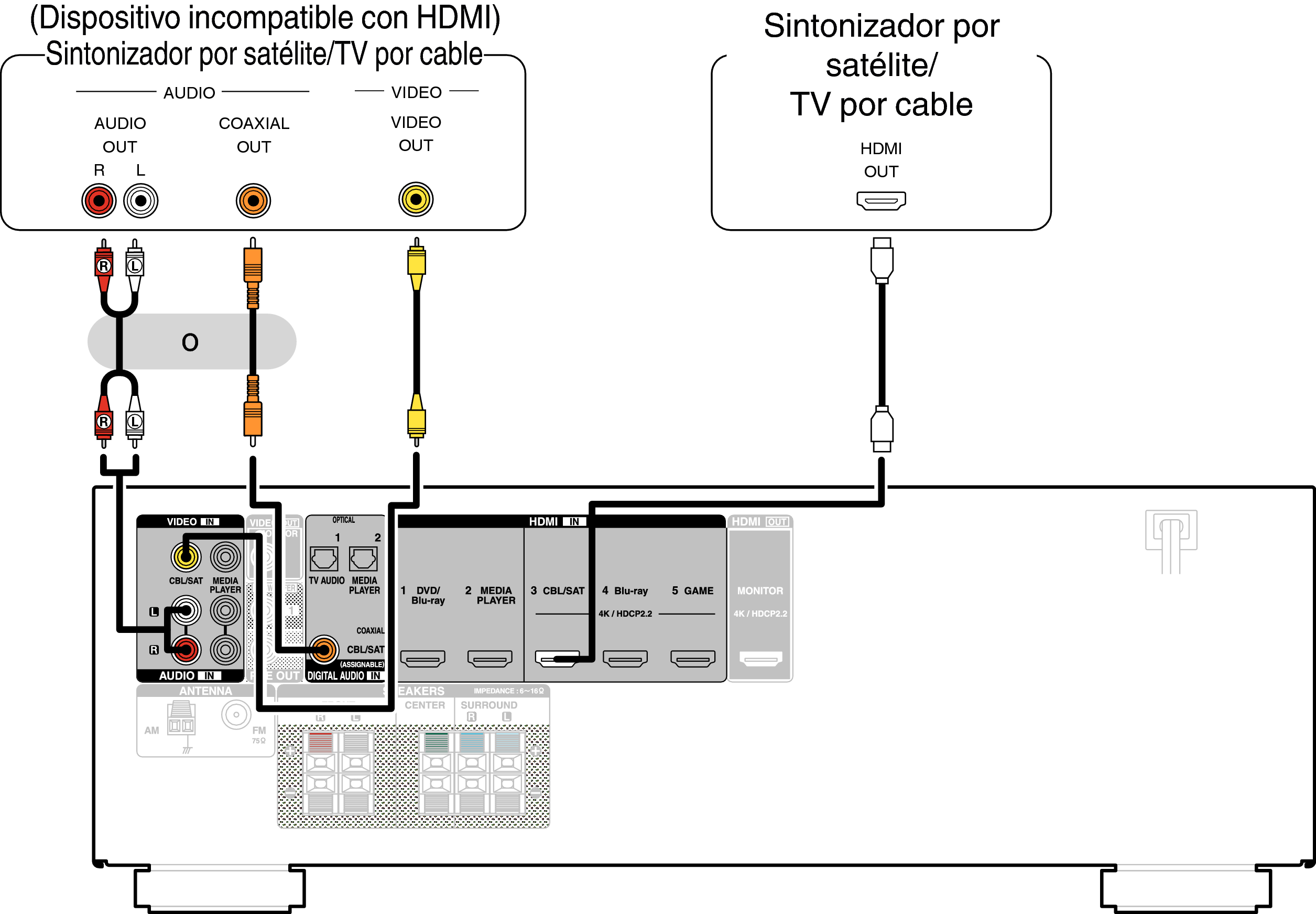 En esta explicación se incluye la conexión con un sintonizador de TV por satelite/por cable como ejemplo.