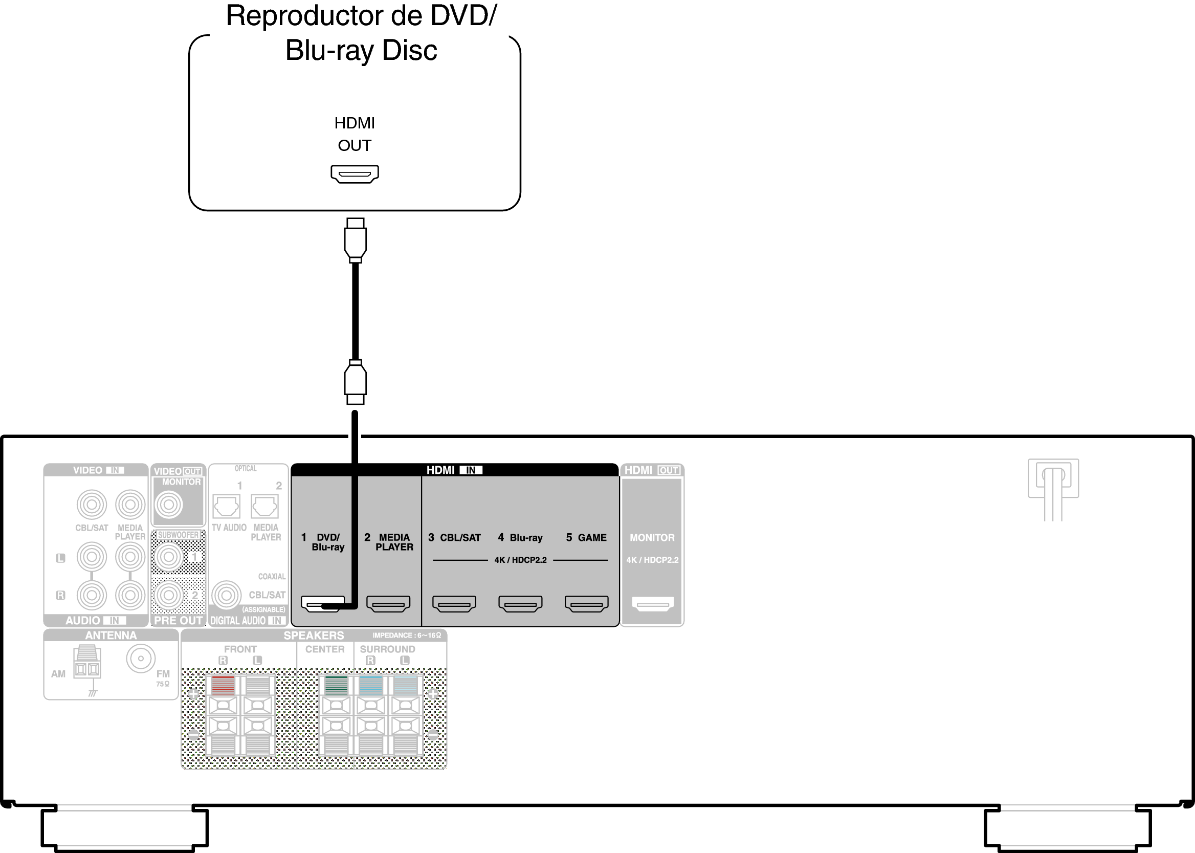 Al conectar un reproductor compatible con 4K/HDCP 2.2, conéctelo al conector de entrada HDMI 3, HDMI 4 o al HDMI 5.