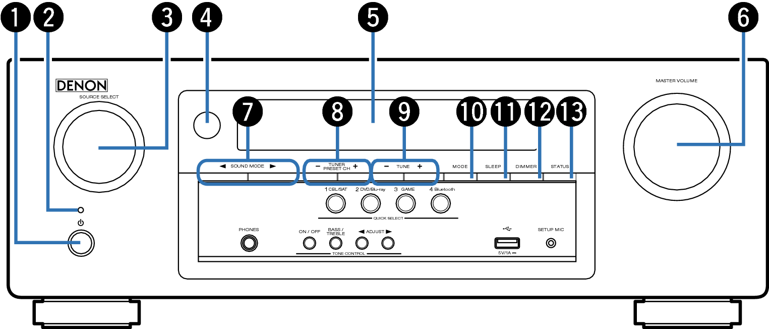 Con una sola pulsación de estos botones, puede recuperar diversos ajustes que haya registrado en cada botón, como, por ejemplo, los ajustes de fuente de entrada, nivel de volumen y modo de sonido. enlace