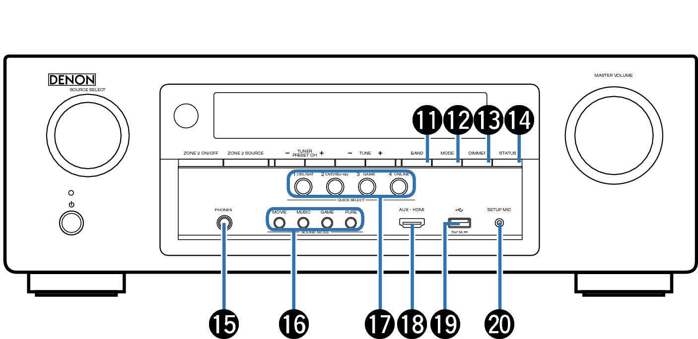 Con una sola pulsación de estos botones, puede recuperar diversos ajustes que haya registrado en cada botón, como, por ejemplo, los ajustes de fuente de entrada, nivel de volumen y modo de sonido. enlace