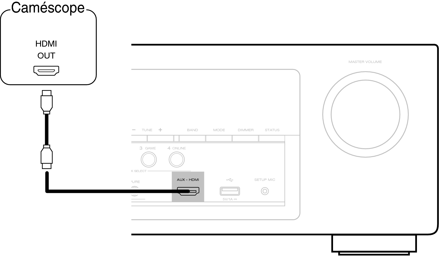 Cette explication utilise la connexion avec un caméscope vidéo comme exemple.
