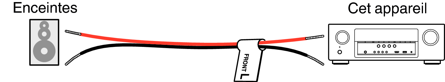 Puis, effectuez la connexion pour que la couleur de la borne d’enceinte corresponde à l’étiquette du câble d’enceinte.