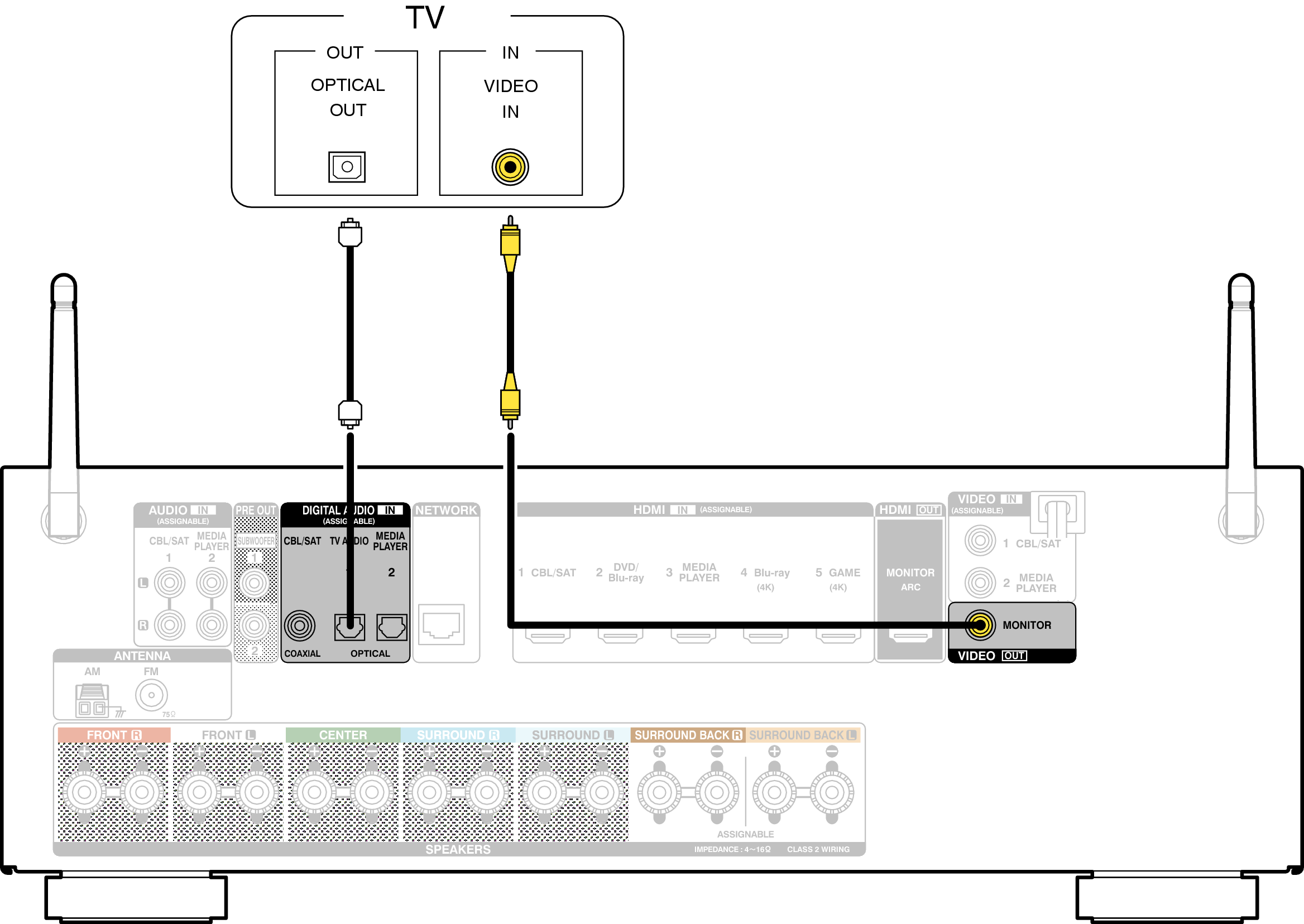 Pour écouter l’audio du téléviseur sur cet appareil, utilisez le câble optique pour connecter le téléviseur à cet appareil.
