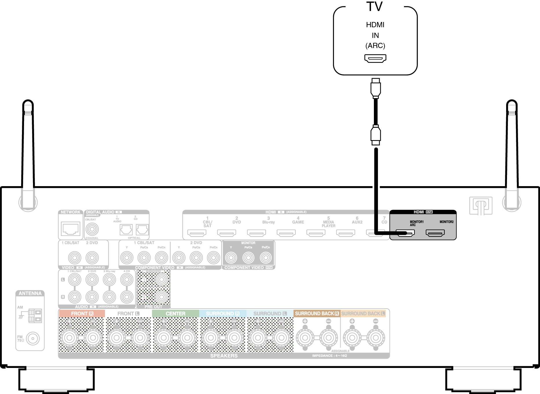 Lors de l’utilisation de la fonction de contrôle HDMI, connectez au borne HDMI MONITOR 1.