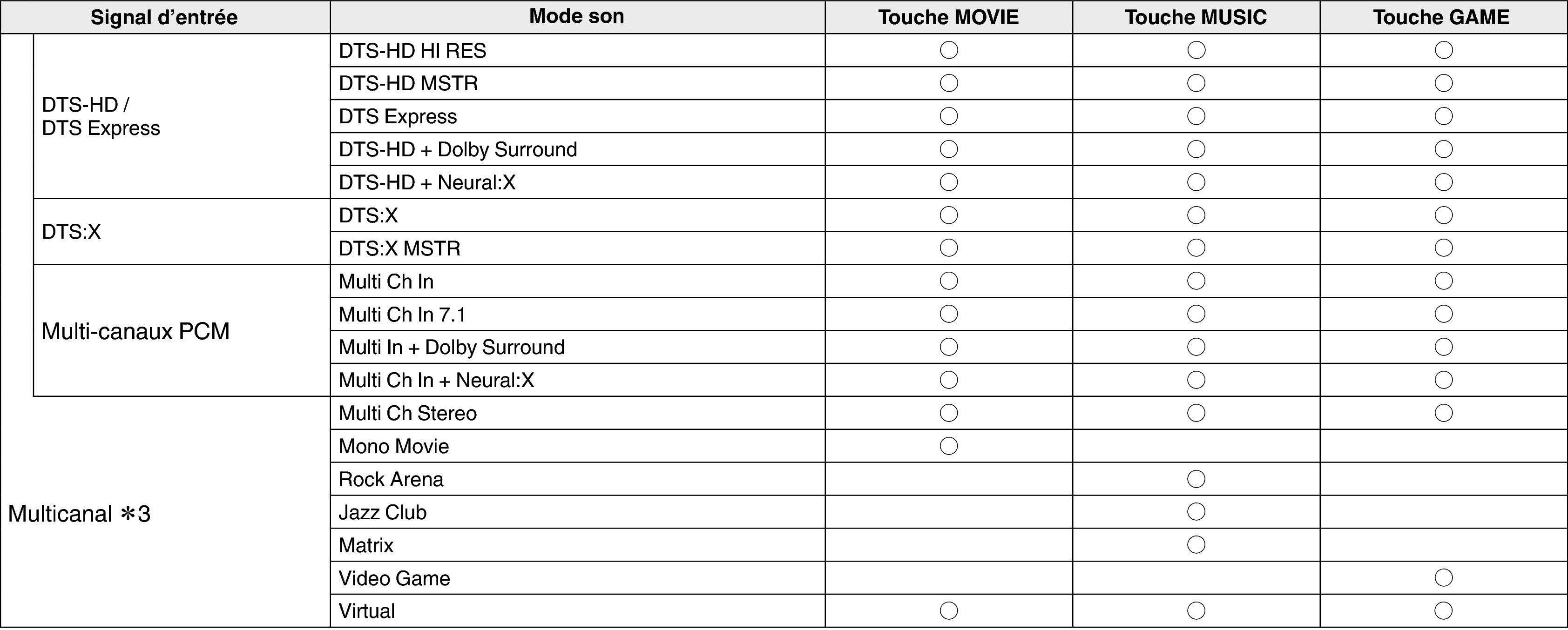Vous pouvez sélectionner ce mode lorsque vous lisez des sources enregistrées en DTS-HD. |