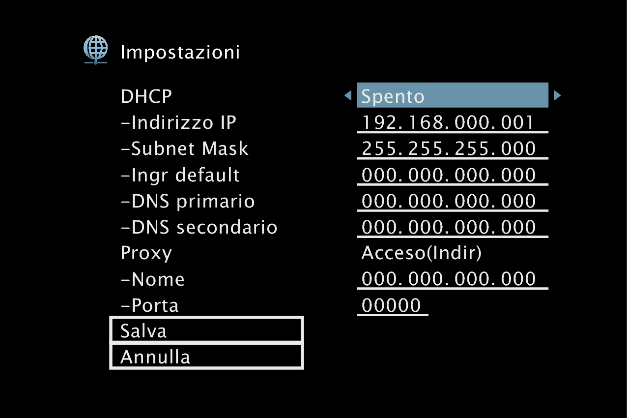 Se nella documentazione è indicato solo un indirizzo DNS fornito dal provider, immetterlo in “DNS primario”. Qualora il provider fornisca due o più DNS, immettere sia il “DNS primario”che il “DNS secondario”.