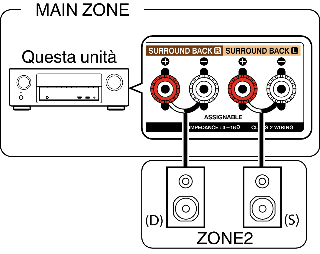 Quando “Modo Assegn.”link è impostato su “ZONE2” nel menu, l’audio ZONE2 viene riprodotto dal terminale dell’altoparlante SURROUND BACK.