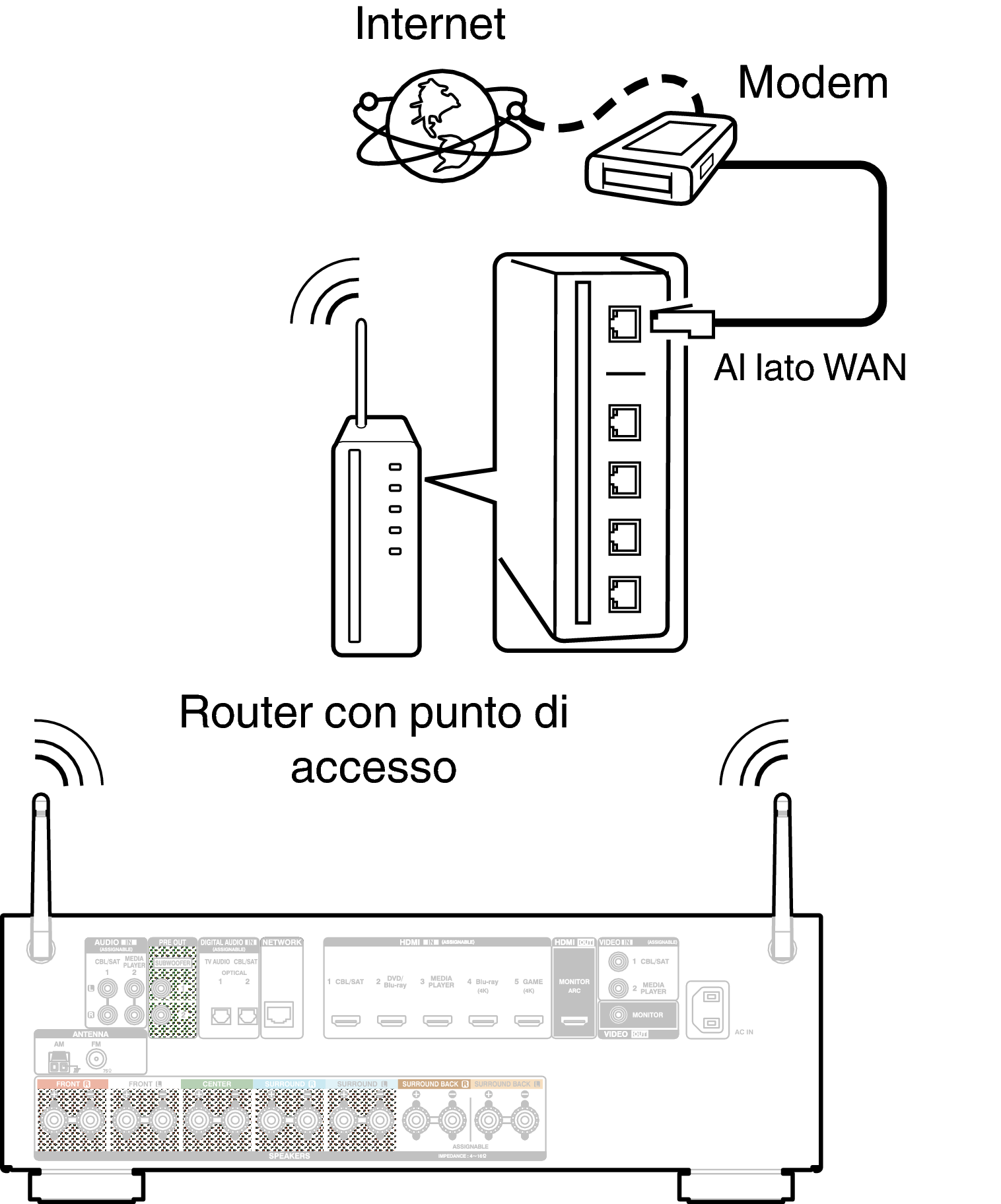 Per ulteriori informazioni su come collegarsi a un router LAN wireless, vedere Impost. Wi-Filink.