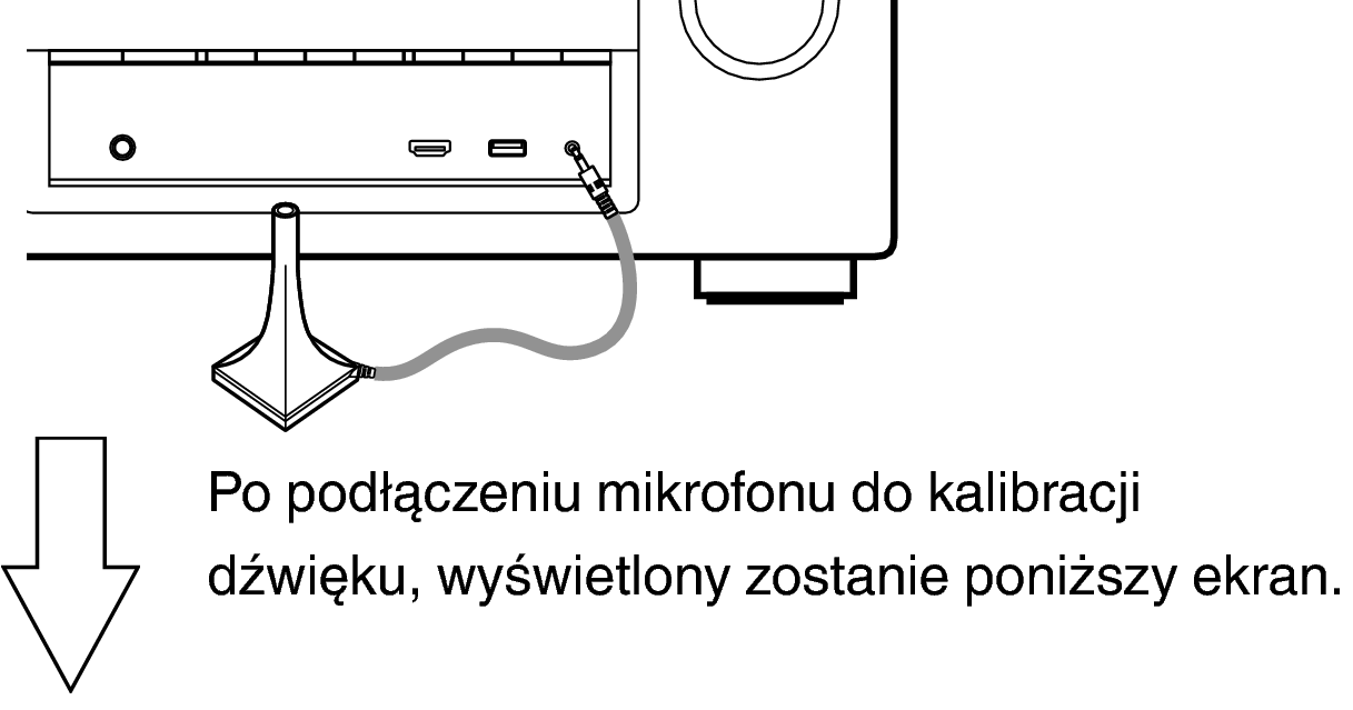 Podczas instalacji mikrofonu do kalibracji dźwięku, należy skierować końcówkę mikrofonu w kierunku sufitu i wyregulować wysokość, aby dopasować ją do wysokości, na jakiej znajdują się uszy słuchacza w pozycji siedzącej.