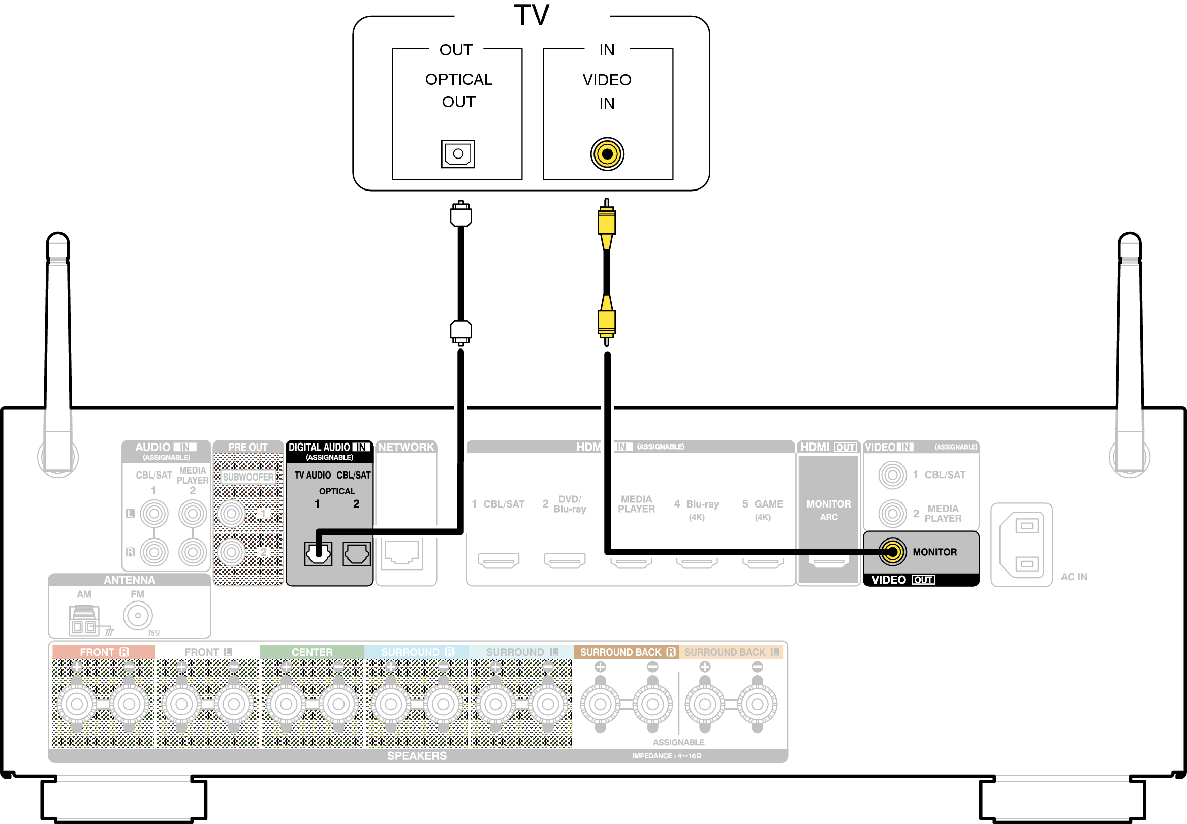 Aby odtwarzać dźwięk z telewizora za pomocą tego urządzenia, użyj kabla optycznego do podłączenia telewizora do tego urządzenia.