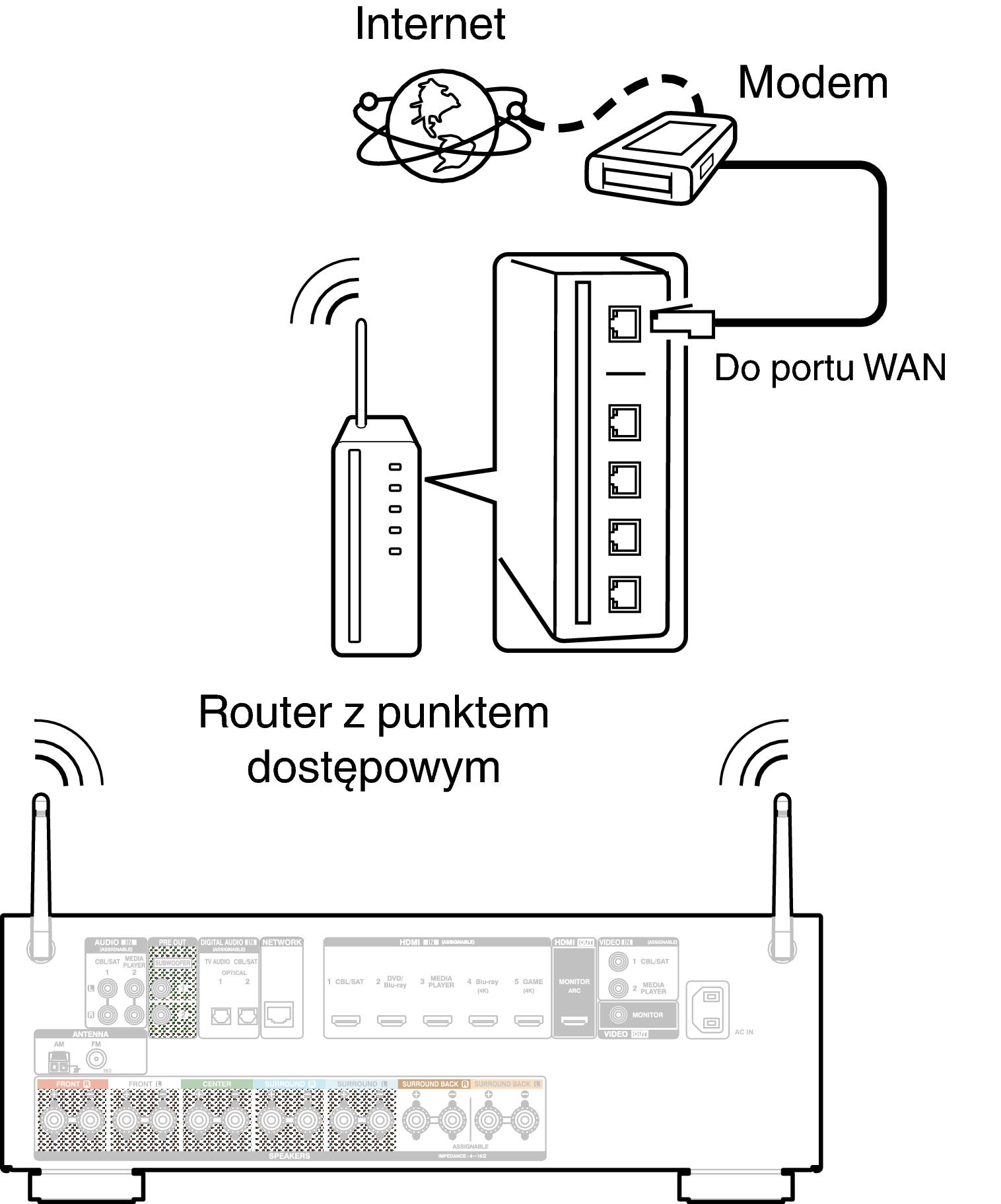 Do współpracy z amplitunerem, zalecamy użycie routera wyposażonego w następujące funkcje: