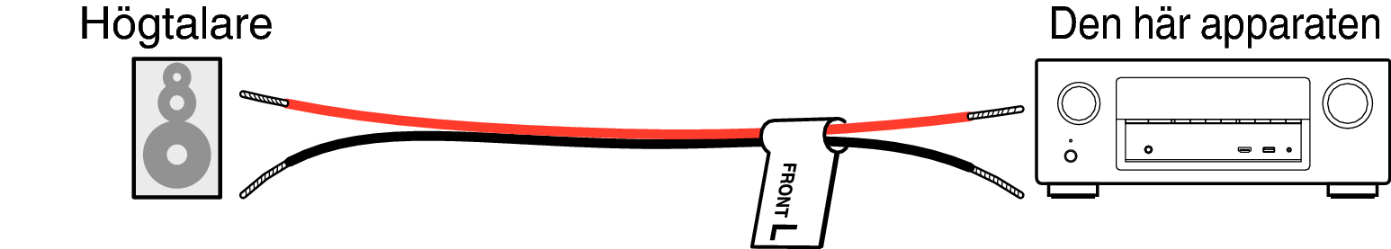 Fäst etiketterna på högtalarkablarna till de olika kanalerna enligt bilden.