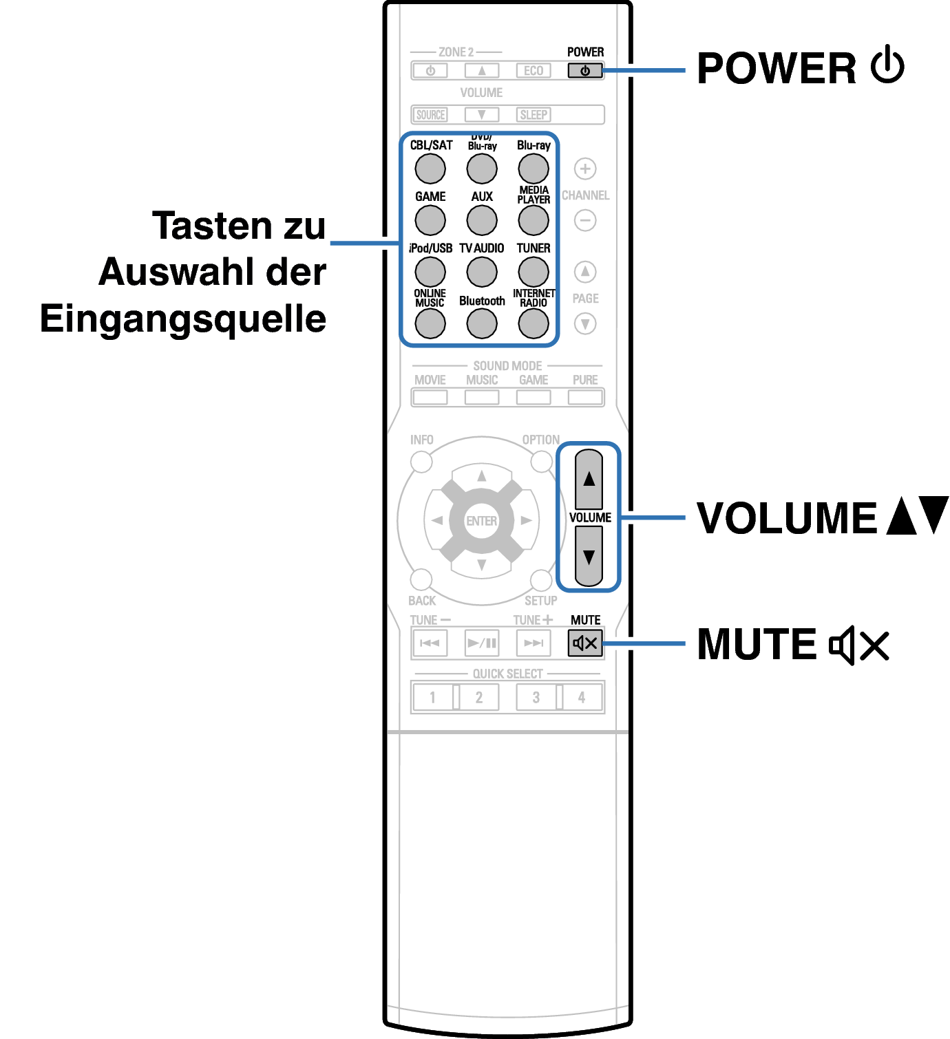 Tasten auf der Fernbedienung, die für diesen Vorgang verwendet werden
