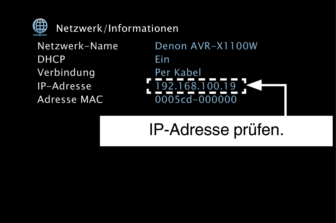 Zur Kontrolle der IP-Adresse dieses Gerätes wählen Sie im Menü “Informationen”.Link