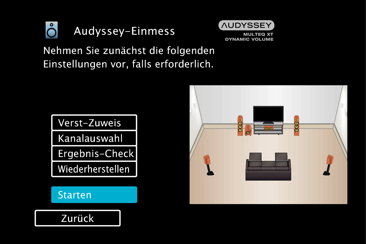 Verfahren für Lautsprechereinstellungen (Audyssey® -Einmessung)