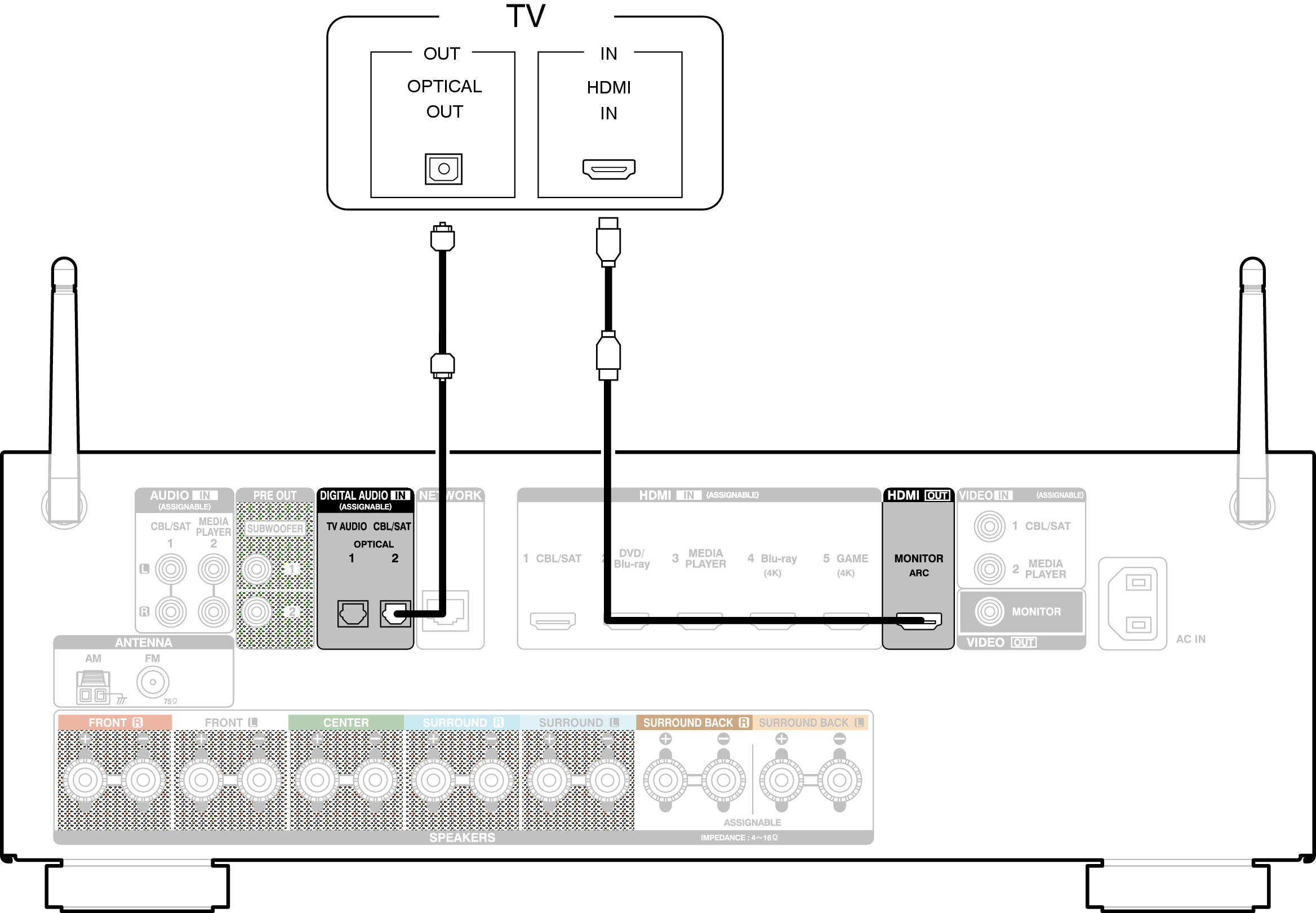 Pour écouter l’audio du téléviseur sur cet appareil, utilisez le câble optique pour connecter le téléviseur à cet appareil.