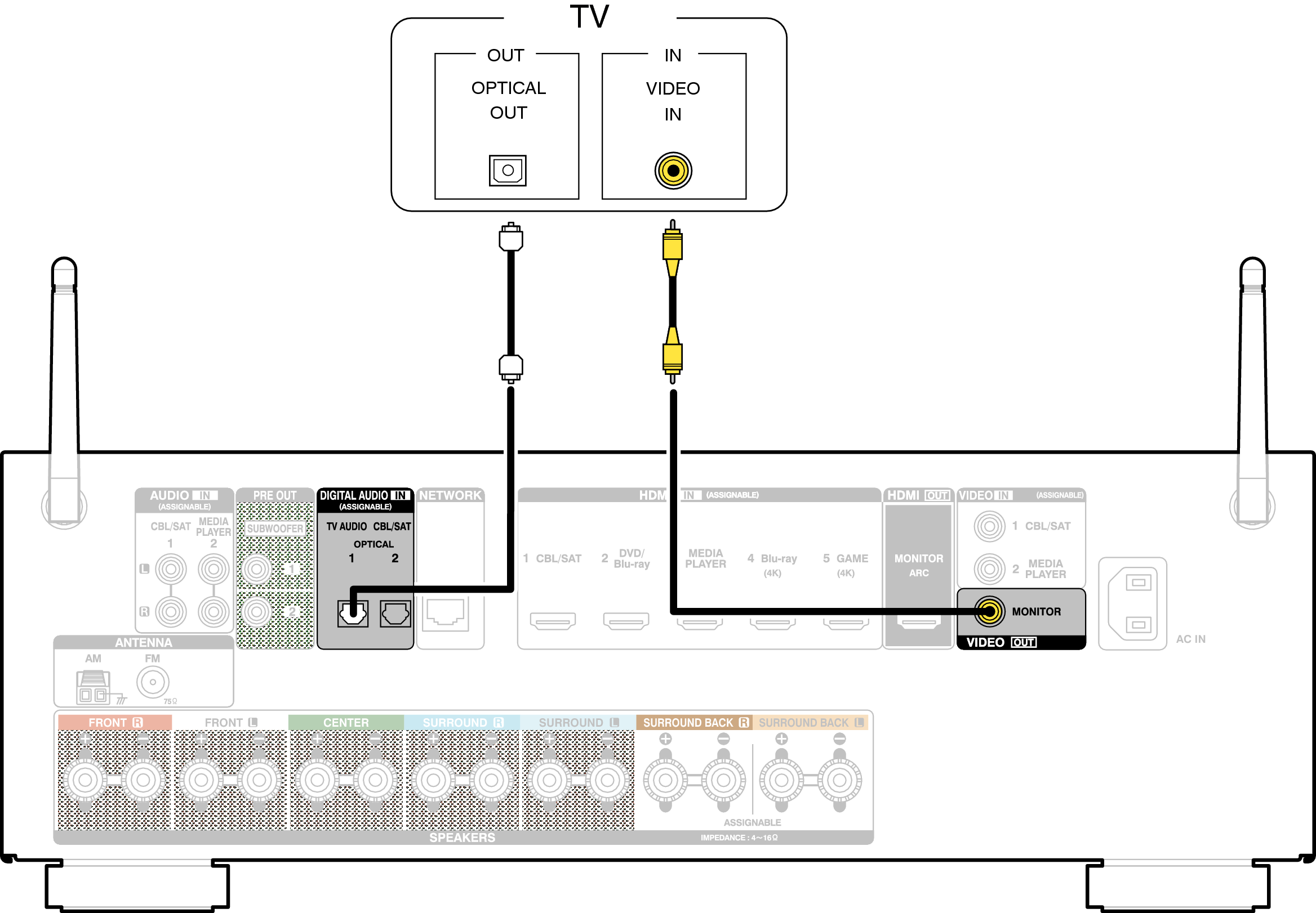 Pour écouter l’audio du téléviseur sur cet appareil, utilisez le câble optique pour connecter le téléviseur à cet appareil.