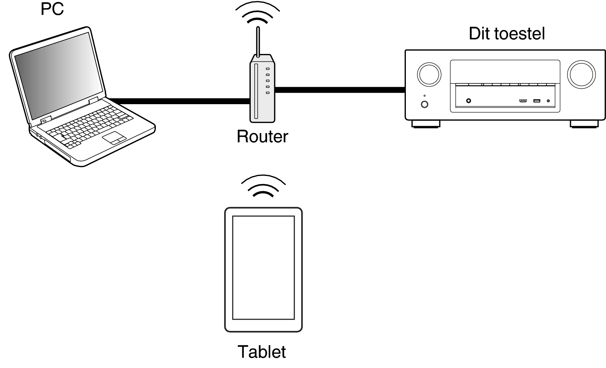 Dit toestel en de pc of tablet moeten correct met het netwerk zijn verbonden om de webregelfunctie te gebruiken. (Aansluiten op een thuisnetwerk (LAN)koppeling)