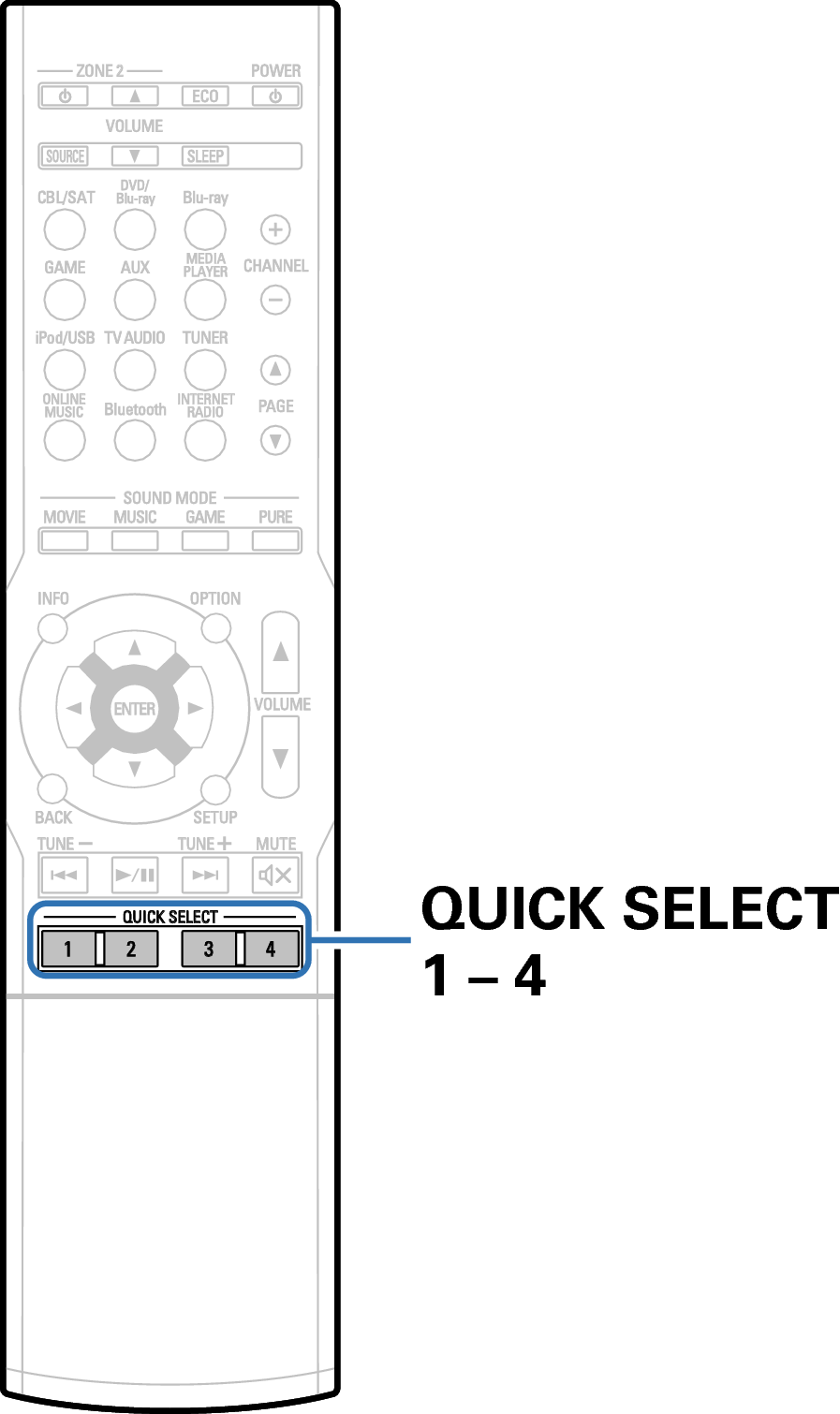 Instellingen zoals de ingangsbron, het volumeniveau en de geluidsmodus, kunnen worden geregistreerd als de knoppen QUICK SELECT 1-4.