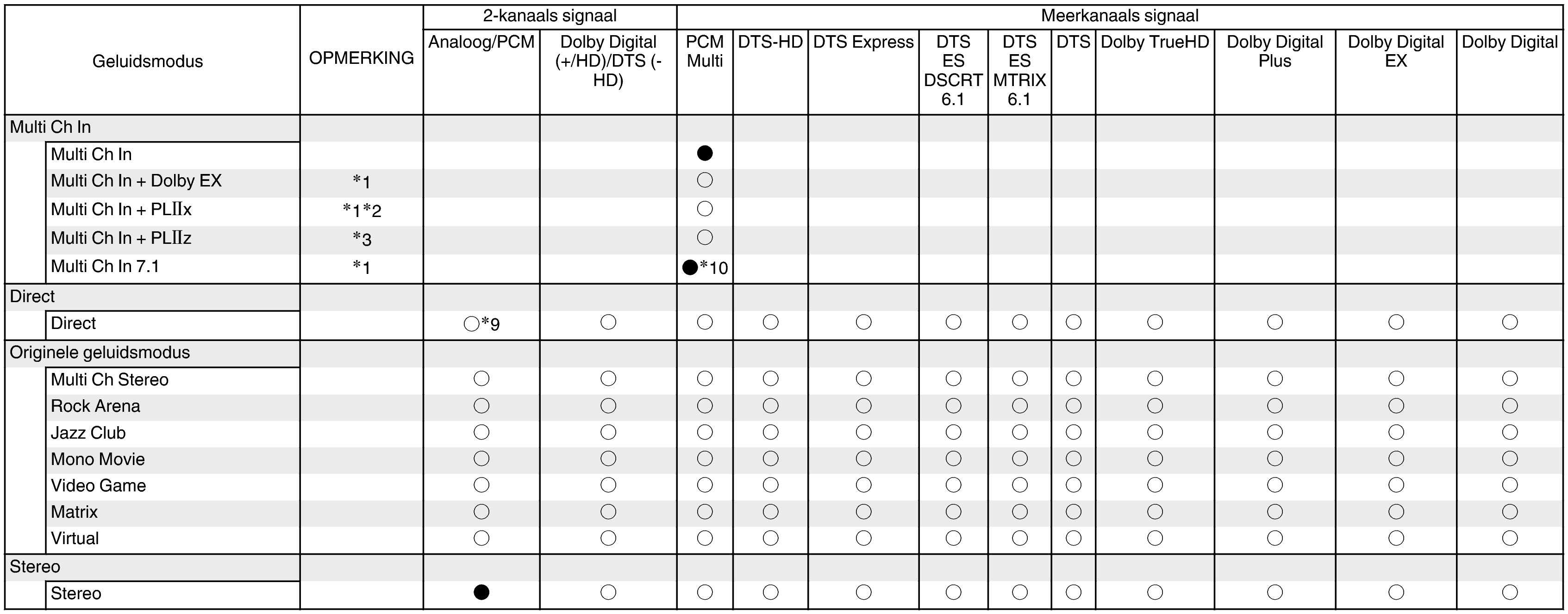 ∗1 – ∗3, ∗9, ∗10 : De typen ingangssignaal en de bijbehorende geluidsmodikoppeling