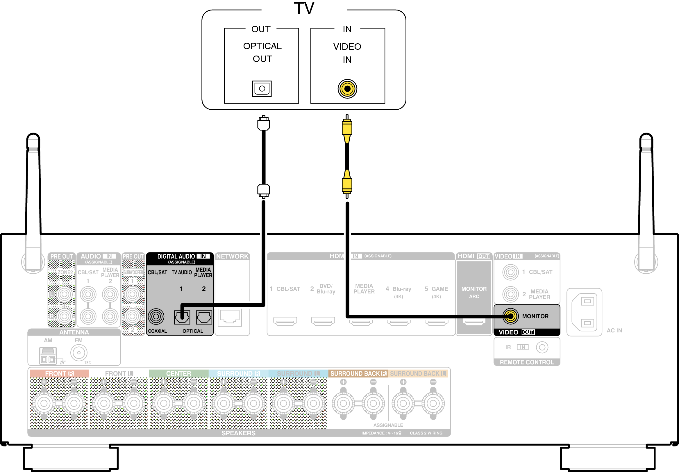 Utilice un cable de vídeo para conectar la TV a esta unidad.