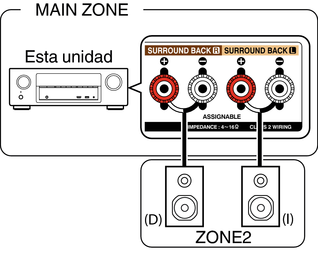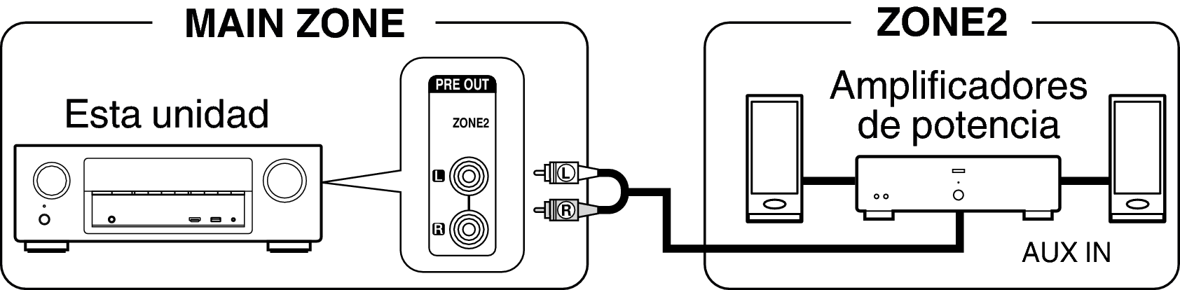 Las señales de audio de los terminales de salida de audio ZONE2 de esta unidad se emiten hacia los amplificadores de la ZONE2 y se reproducen en estos amplificadores.