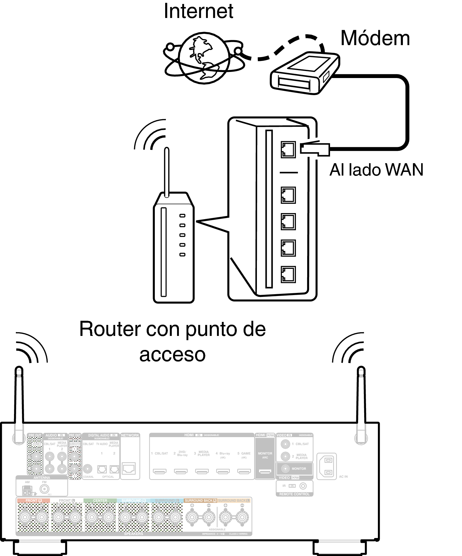 Al conectar varios dispositivos, le recomendamos utilizar un concentrador de conmutación con una velocidad de 100 Mbps o superior.