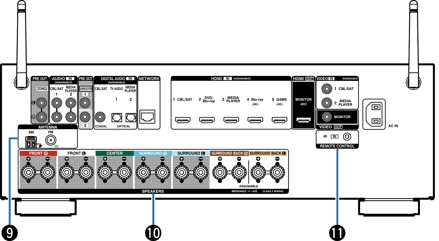Se utiliza para conectar un subwoofer con amplificador integrado o un amplificador de potencia para ZONE2. enlace, enlace
