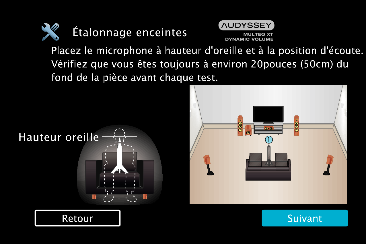 Procédure pour les réglages des enceintes (Conf. Audyssey®)