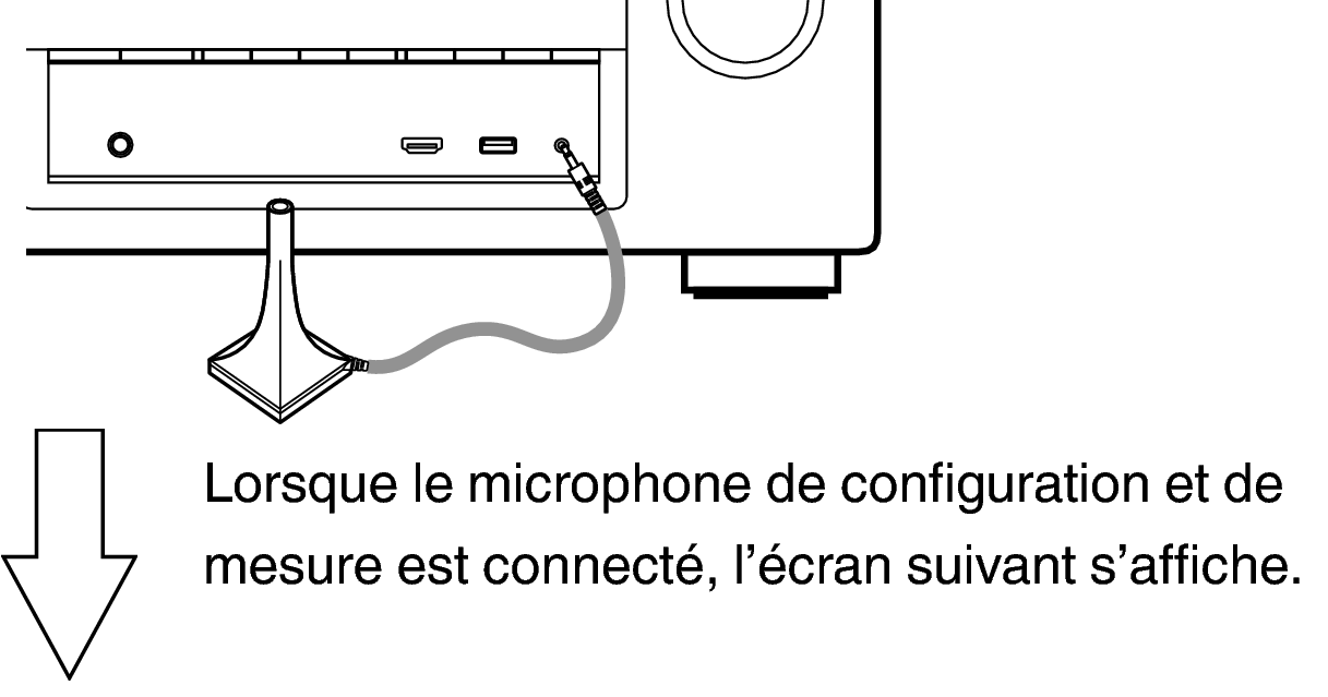 Lors de l’installation du microphone d’étalonnage du son, pointez l’extrémité du microphone vers le plafond et réglez la hauteur afin qu’elle corresponde à celle des oreilles d’un auditeur en position assise.