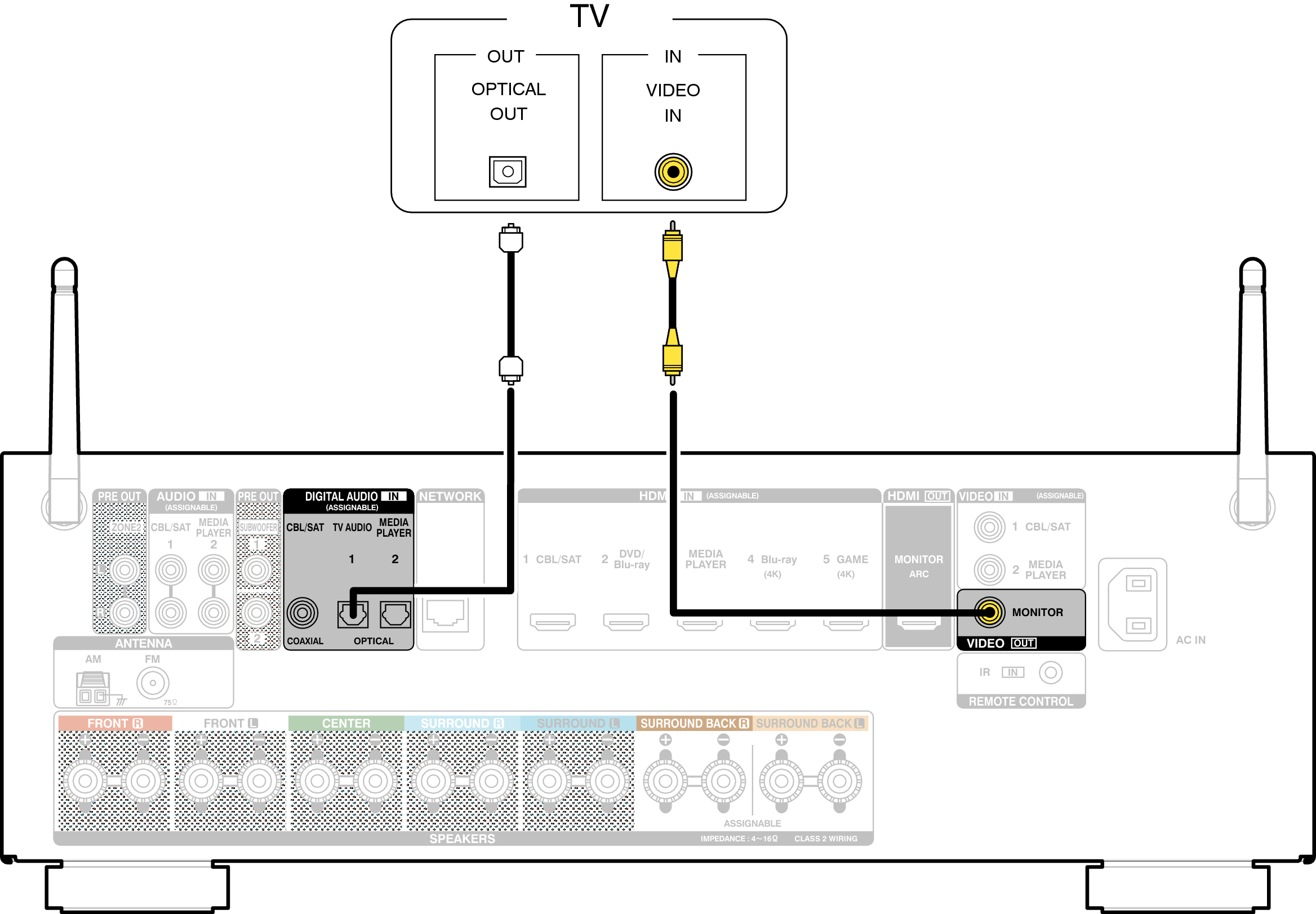 Pour écouter l’audio du téléviseur sur cet appareil, utilisez le câble optique pour connecter le téléviseur à cet appareil.