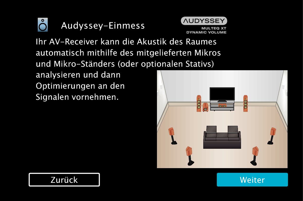 Verfahren für Lautsprechereinstellungen (Audyssey® -Einmessung)