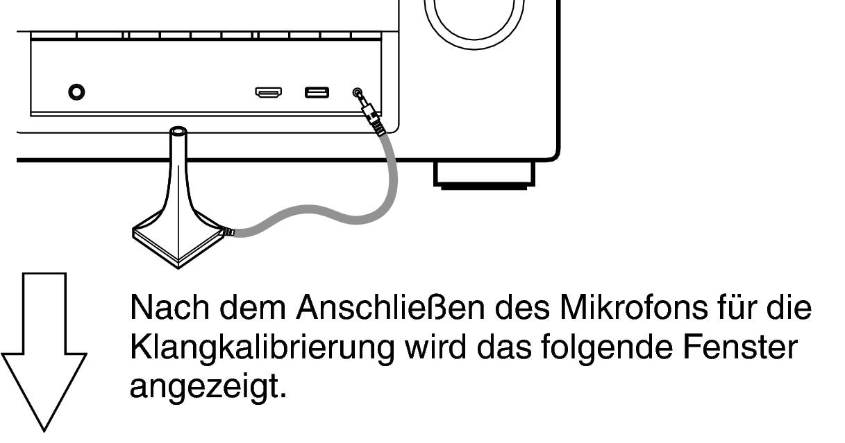 Wenn Sie das Mikrofon für die Klangkalibrierung aufstellen, richten Sie dessen Spitze zur Decke und stellen Sie die Höhe so ein, dass es sich in der Höhe der Ohren eines sitzenden Zuhörers befindet.