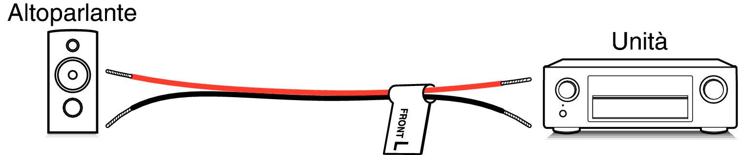 Quindi, effettuare i collegamenti in modo che il colore del terminale del diffusore corrisponda a quello dell’etichetta del cavo.