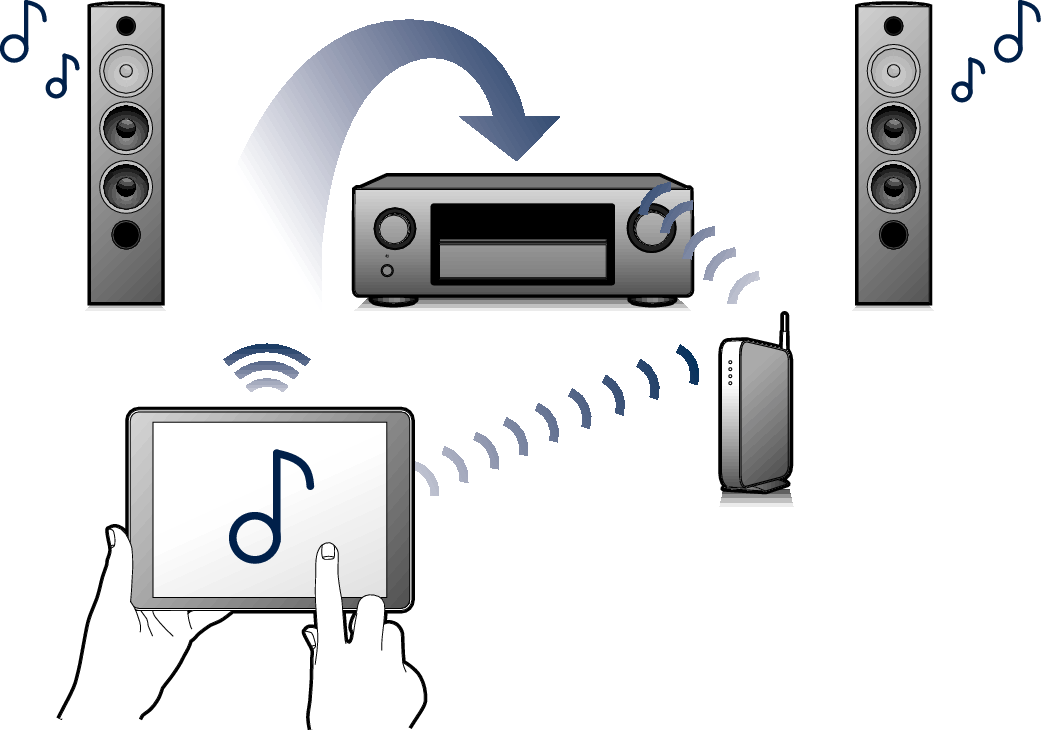 “Denon 2015 AVR Remote” to aplikacja umożliwiająca wykonywanie podstawowych czynności, na przykład włączenie/wyłączenie urządzenia, sterowanie głośnością oraz zmianę źródła dźwięku za pomocą urządzeń iPad, iPhone oraz smartfonów i tabletów z systemem Android.