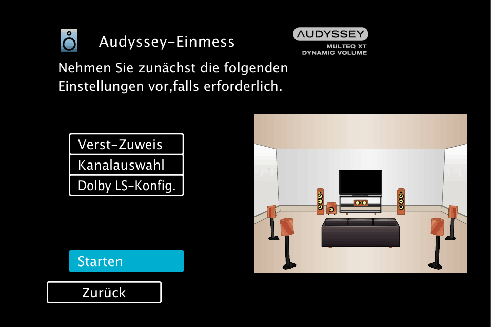 Verfahren für Lautsprechereinstellungen (Audyssey® -Einmessung)