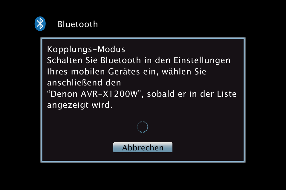 Bevor Sie Musik von einem Bluetooth-Gerät auf diesem Gerät wiedergeben können, muss das Bluetooth-Gerät zuerst mit diesem Gerät gekoppelt werden.