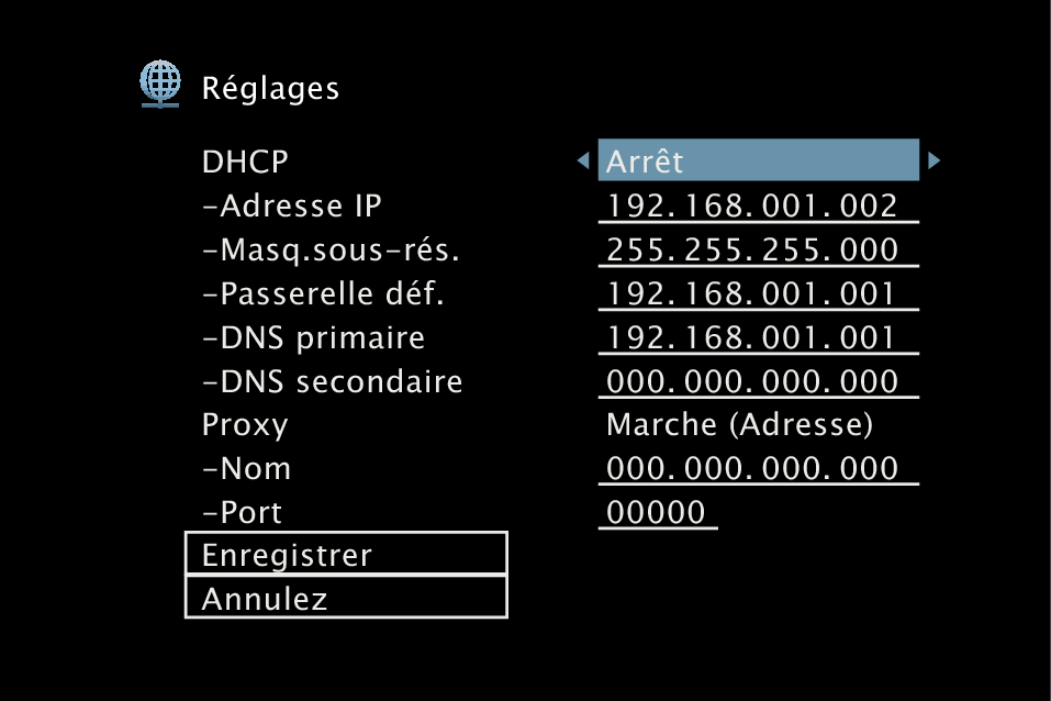 Utilisez ce réglage pour réaliser une connexion internet avec un serveur proxy.