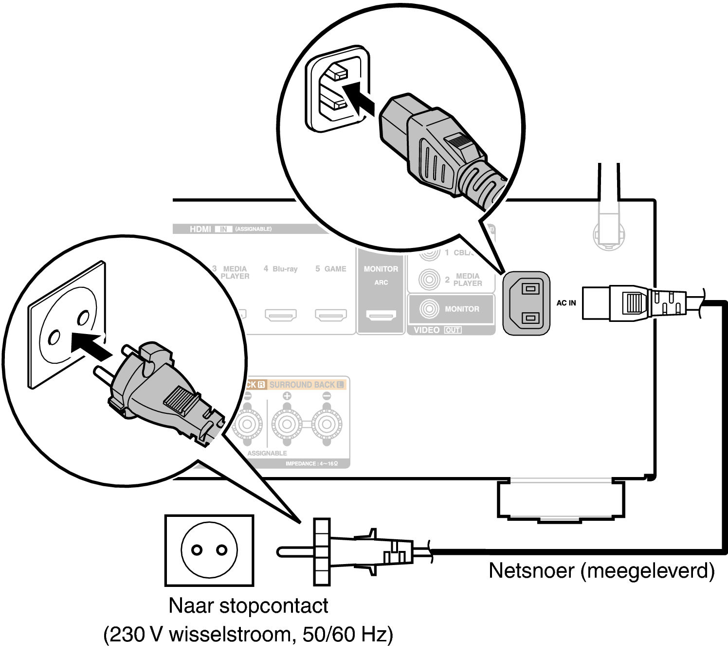 Stop de stekker in het stopcontact nadat u alle aansluitingen hebt voltooid.