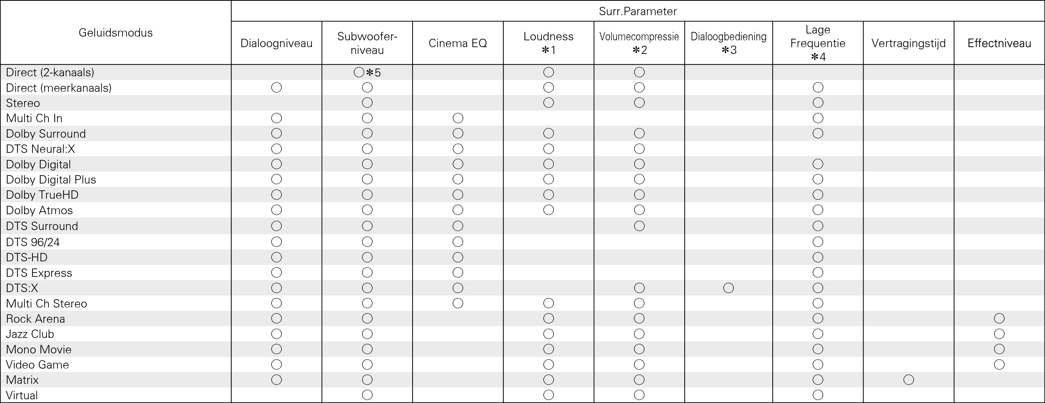 Geluidsmodi en surround-parameters