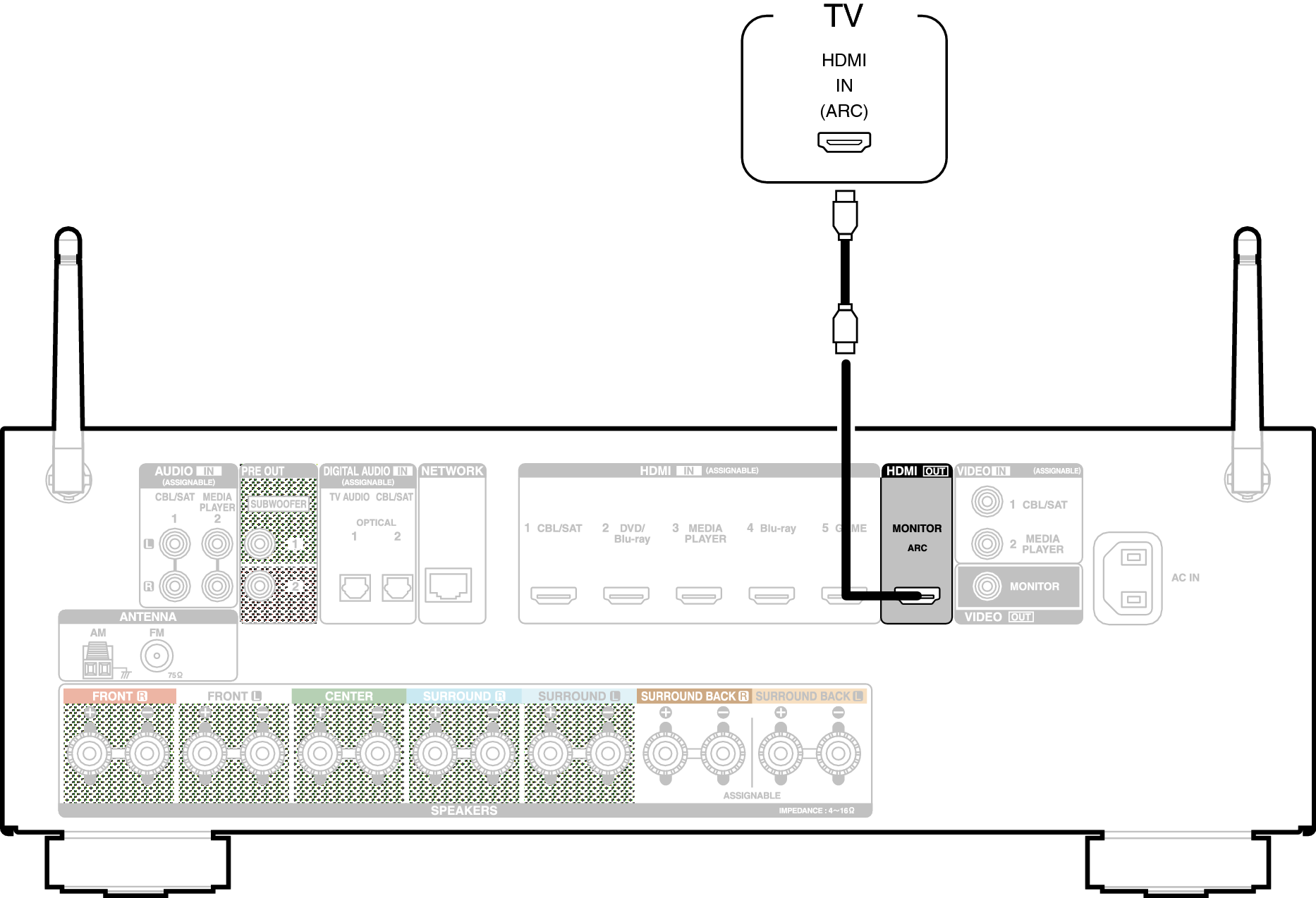 Gebruik een HDMI-kabel voor het aansluiten van een tv die compatibel is met de ARC-functie, op dit toestel.