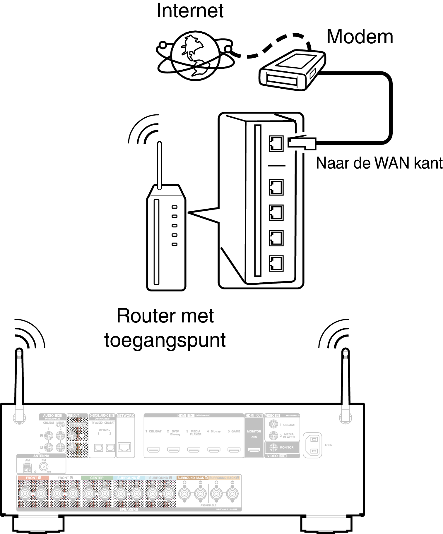 Het type van router dat kan worden gebruikt, kan per internetprovider variëren. Neem voor details contact op met uw internetprovider of computerwinkel.