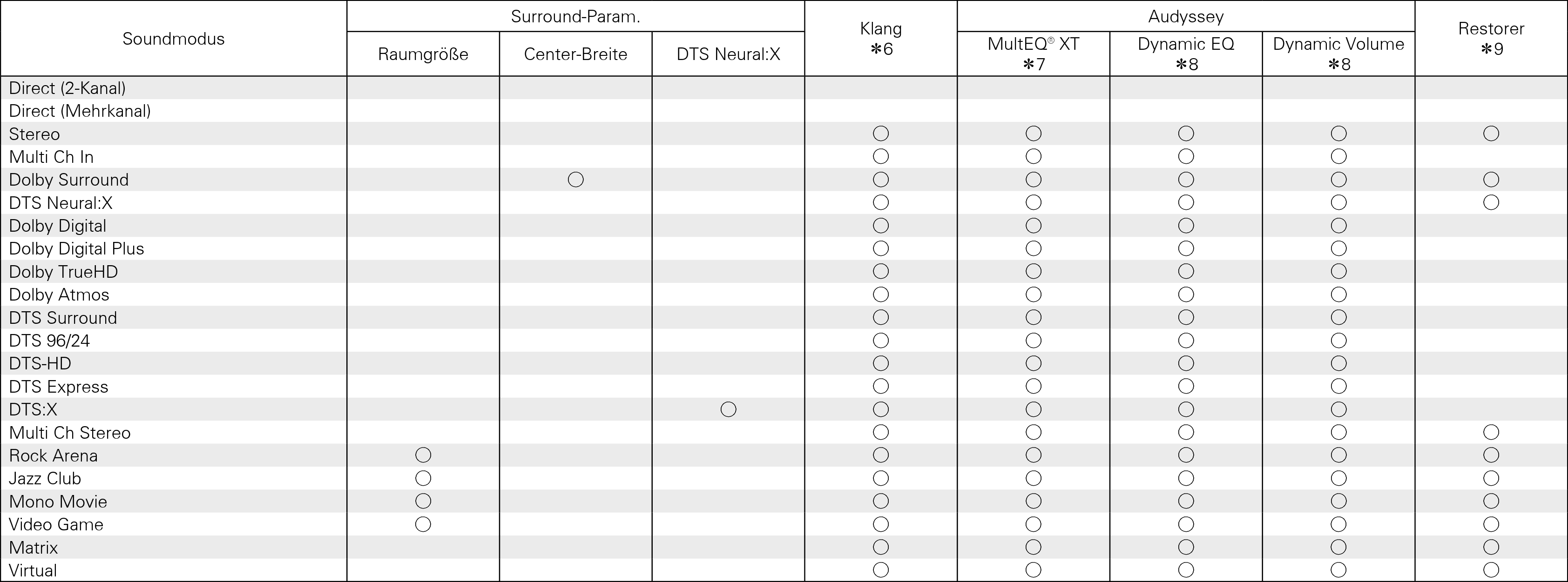 Klangmodi und Surround-Parameter
