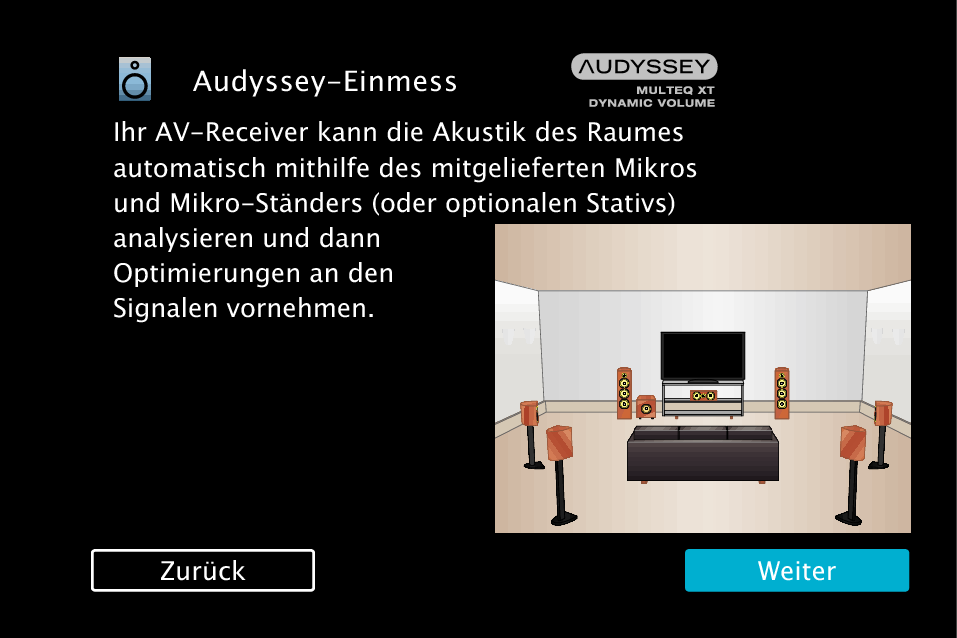 Verfahren für Lautsprechereinstellungen (Audyssey® -Einmessung)